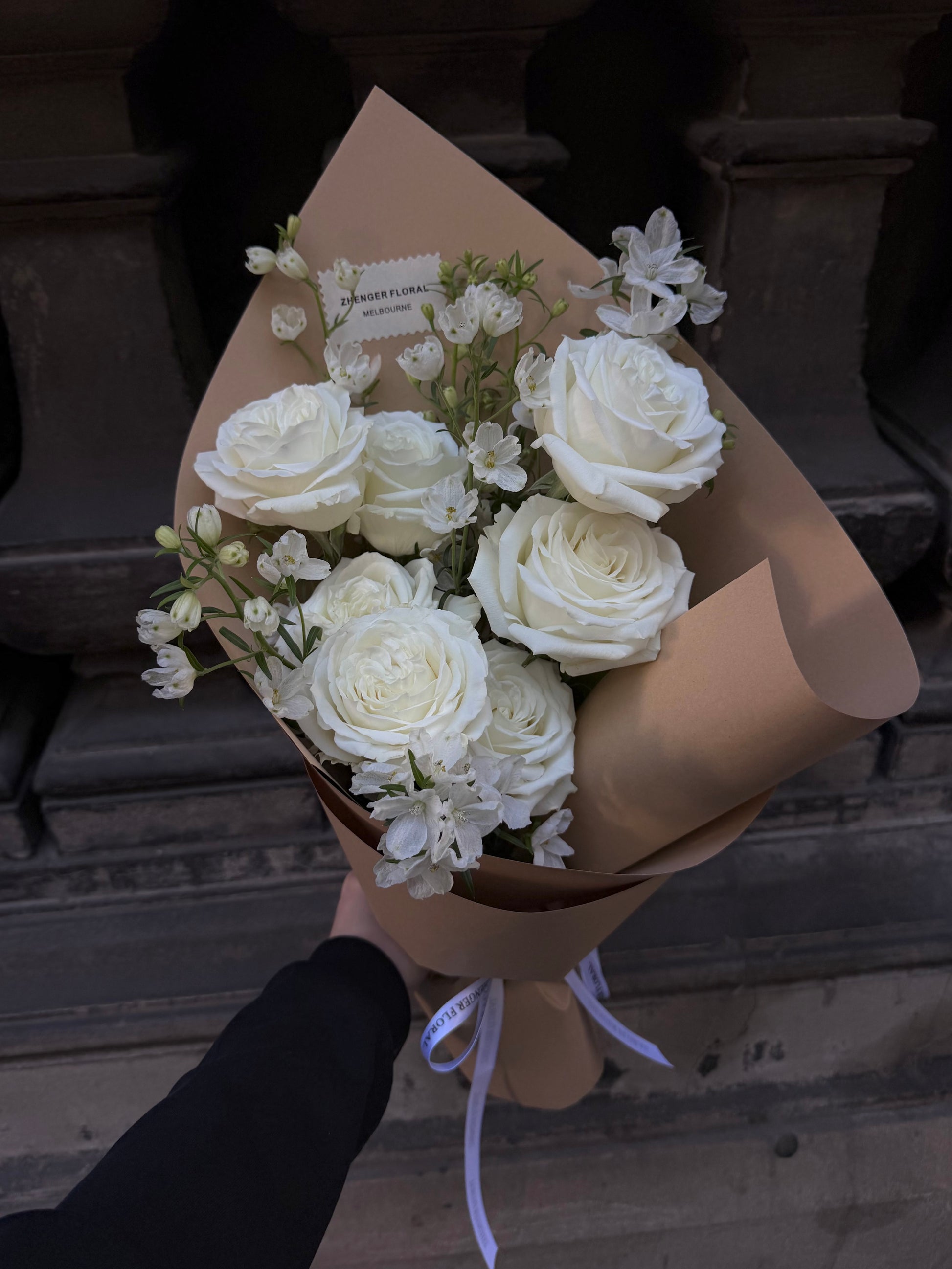 Light as a sigh, soft as a secret Vanilla Cloud is a dreamy mix of white roses and petite florals, wrapped in warm tones that evoke calm mornings and tender thoughts.