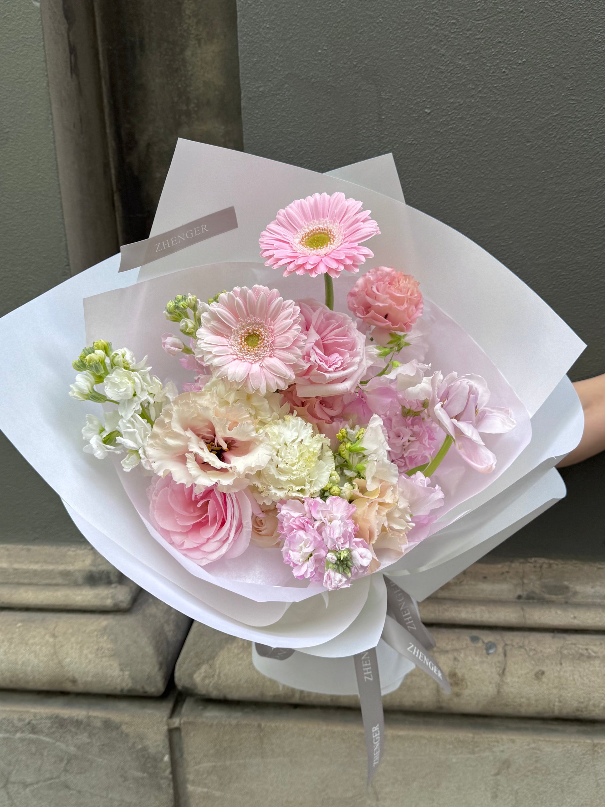 A dreamy blend of soft pinks, creamy whites, and delicate textures, “Sugar Petal” is as sweet as its name. Light as a whisper and pretty as a daydream, this bouquet is perfect for birthdays, graduations, baby showers, or simply to brighten a loved one’s day with a touch of gentle joy.