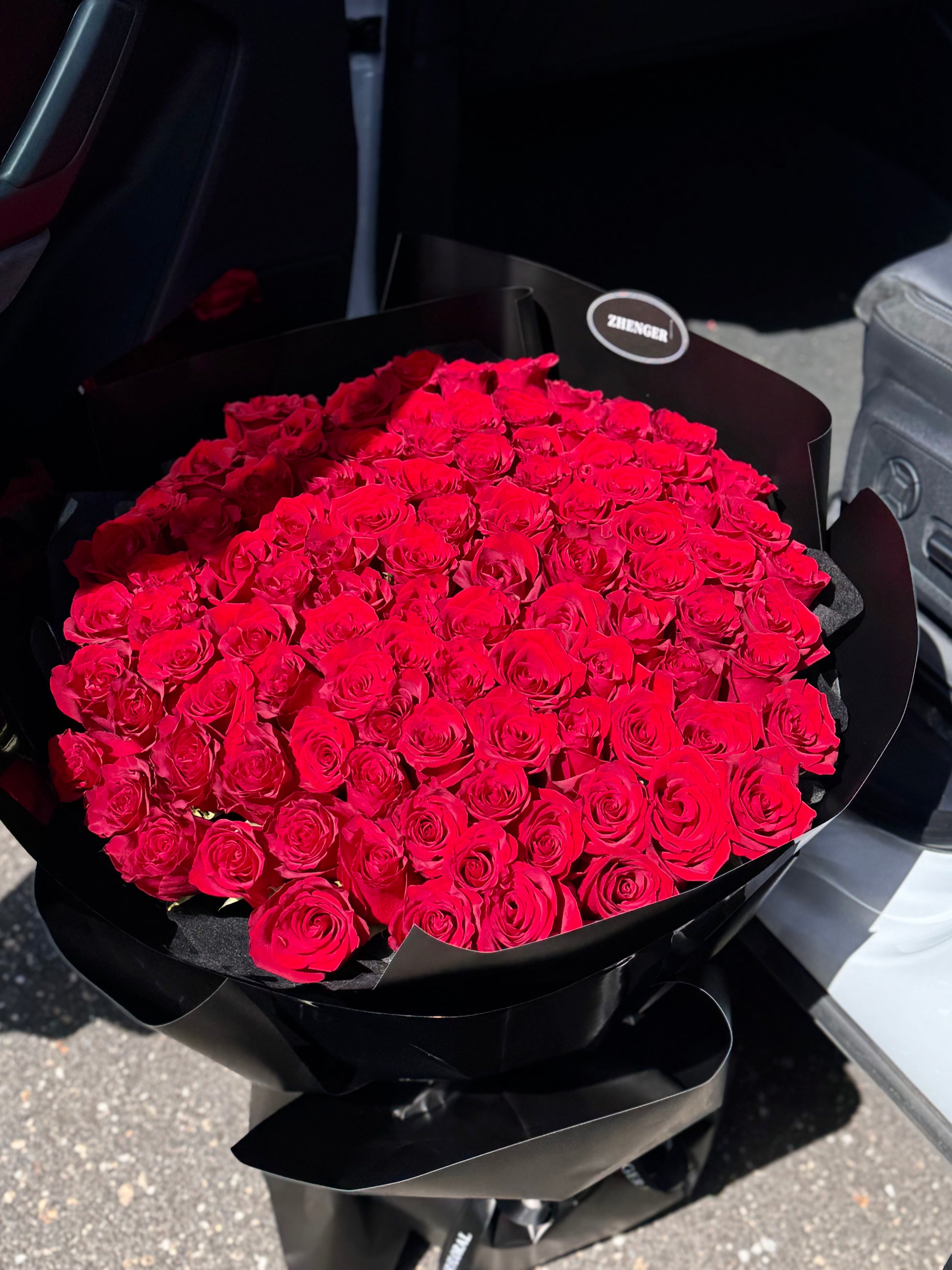 99 stem classic red rose in full bloom—bold, timeless, and rich with emotion, like love spoken without a word.