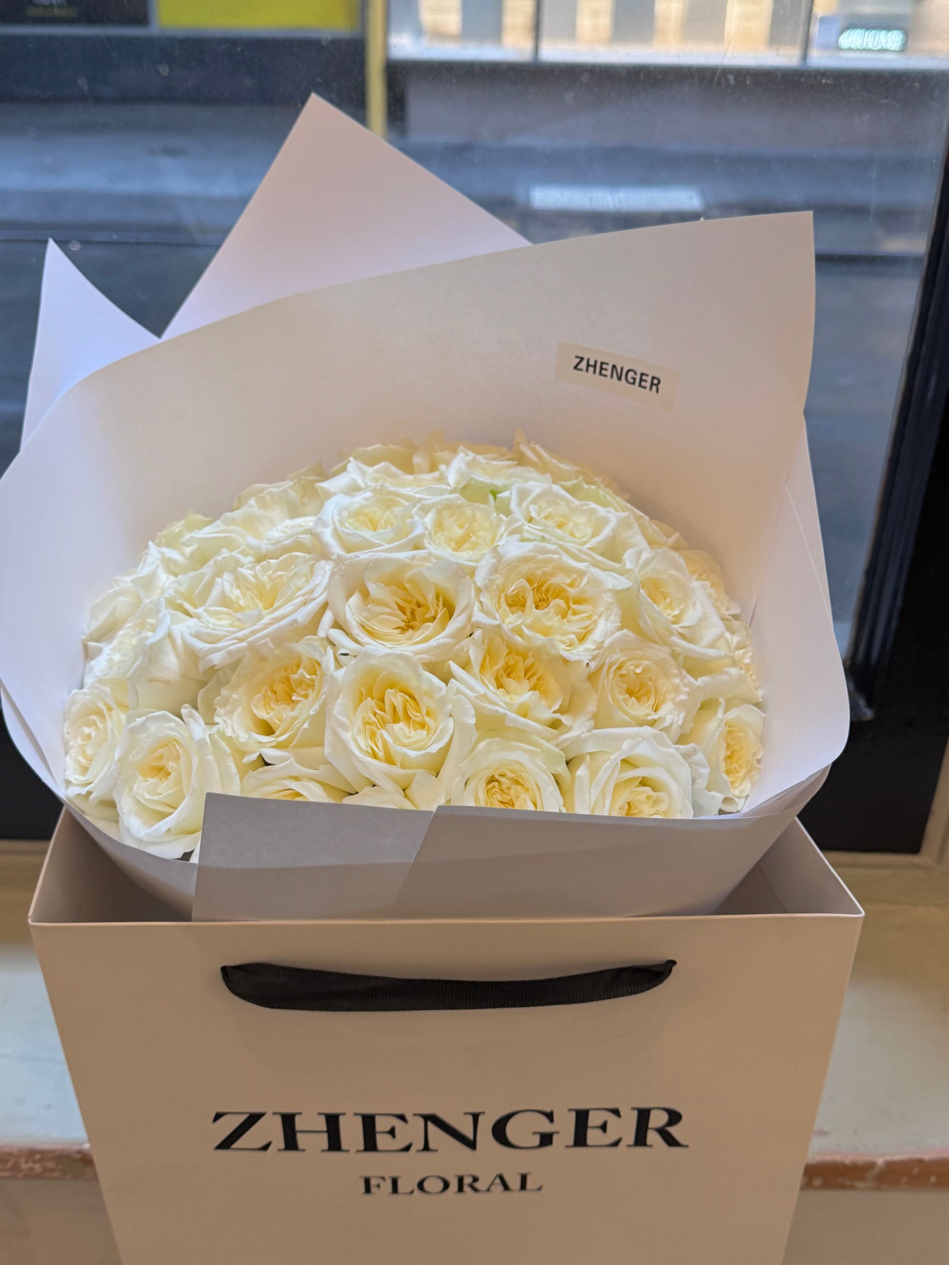 Elegant and refreshing, this arrangement is a graceful expression of pure love, heartfelt friendship, or simply a serene and fragrant gesture for someone special.